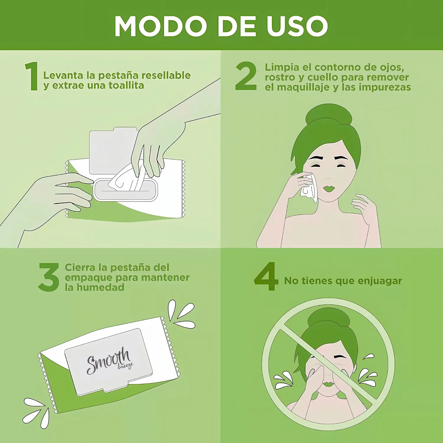 Smooth Breeze Toallitas Húmedas Desmaquillantesv 30s Polvo de Carbón