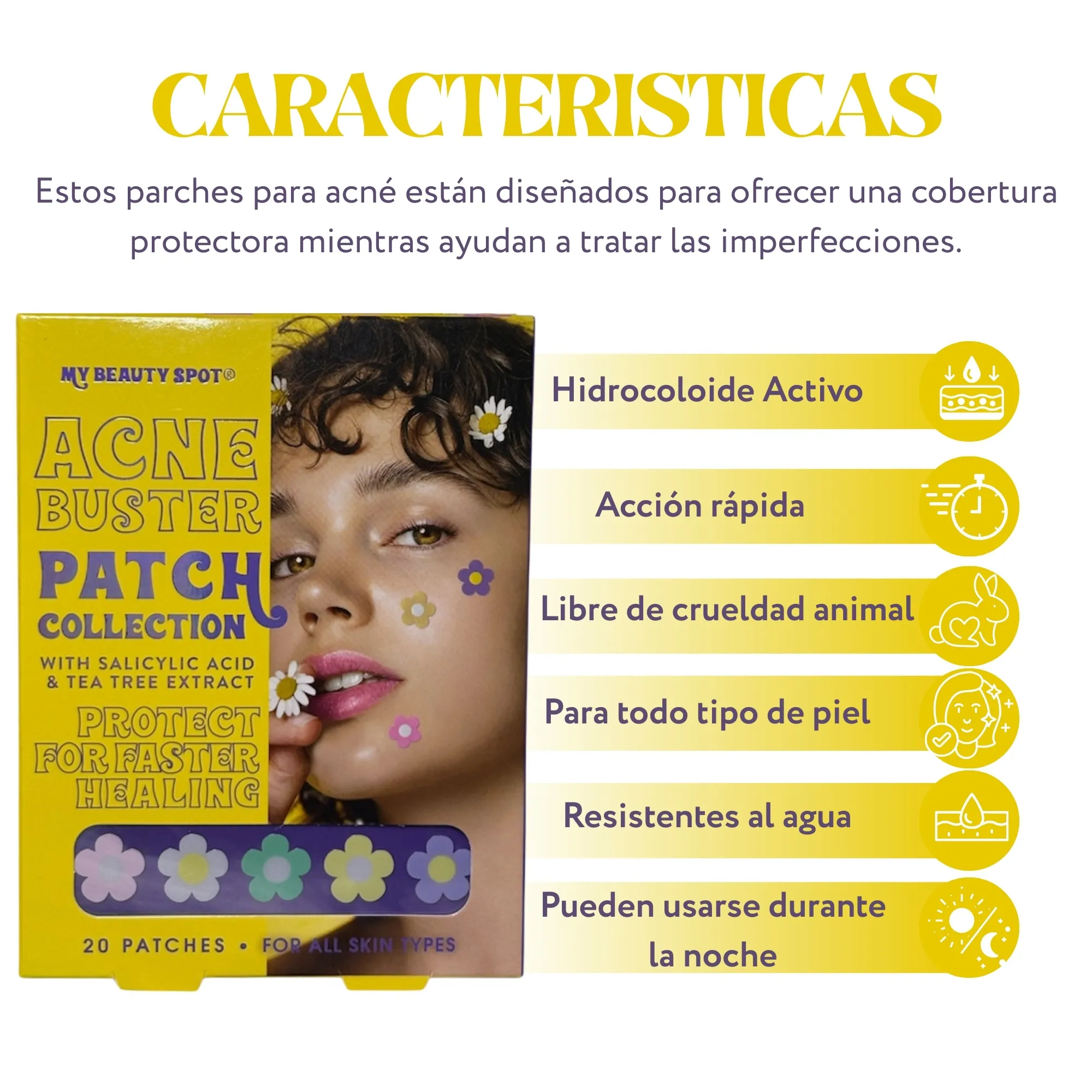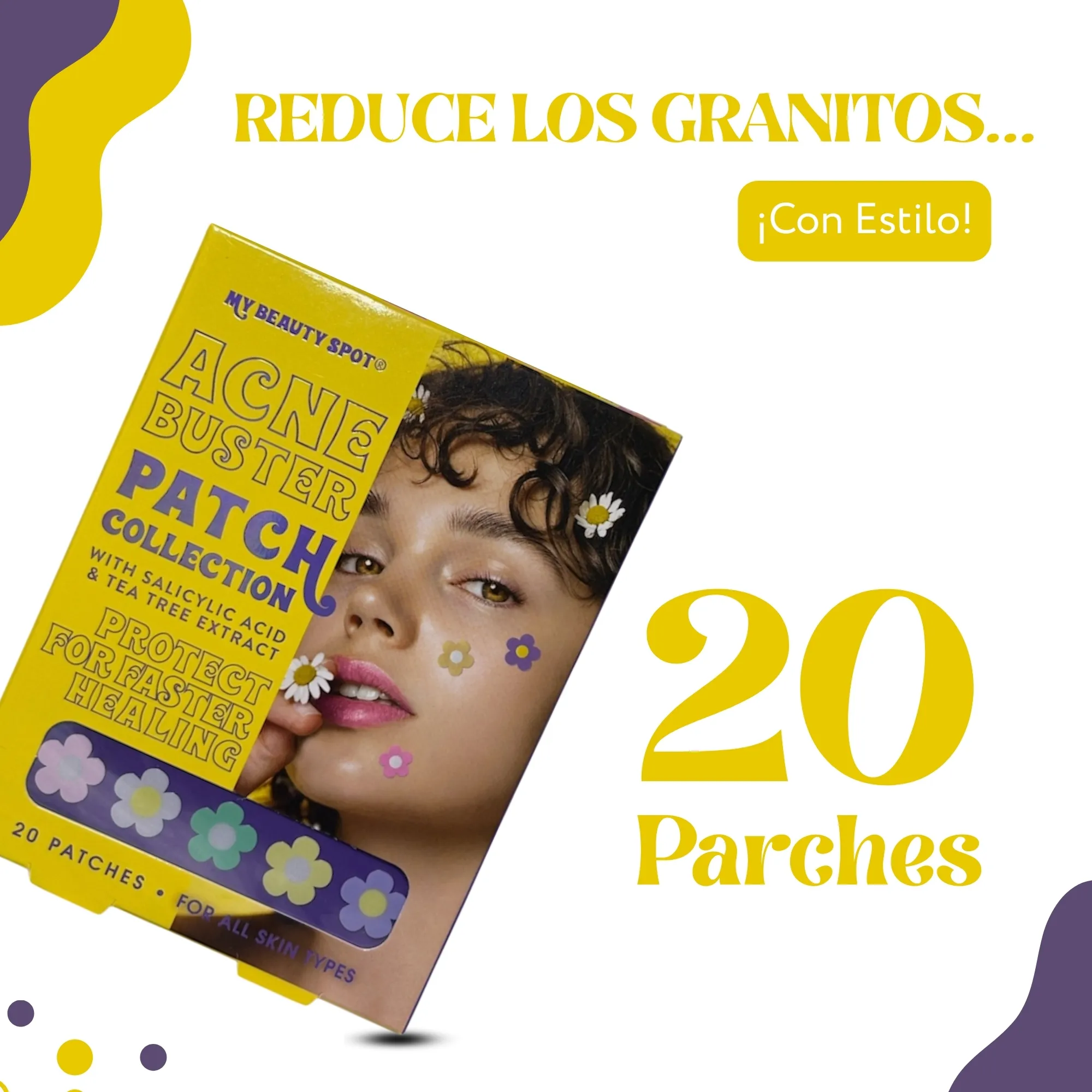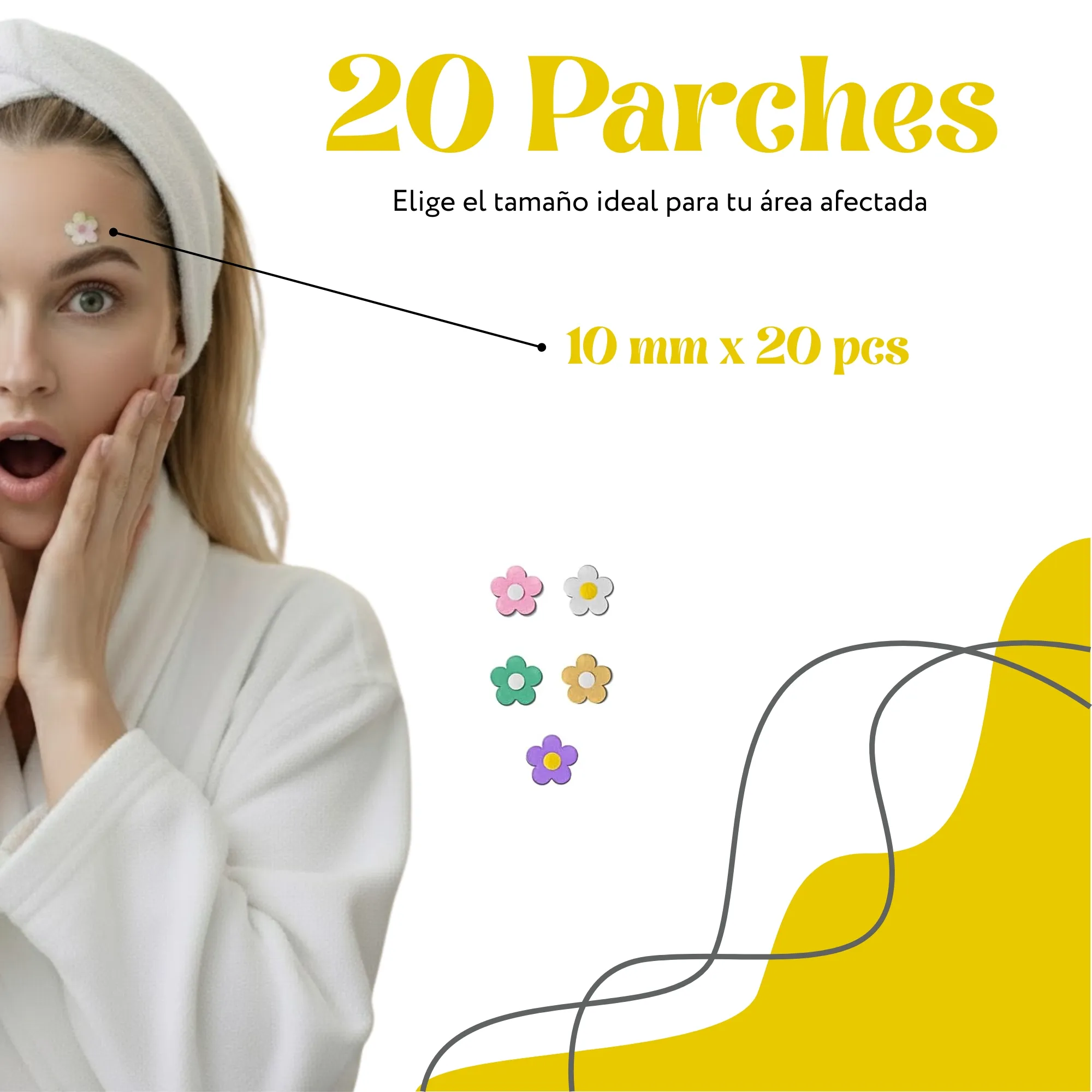 20 Parches*Para todo tipo de piel, en forma de flores.